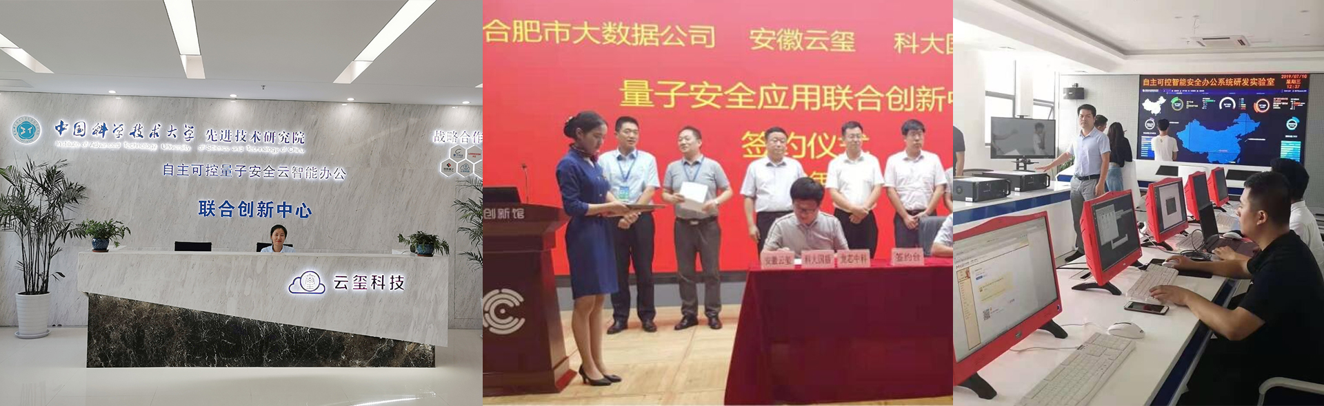 自主可控量子安全云智能辦公聯(lián)合創(chuàng)新中心由云璽量子科技、市大數(shù)據(jù)公司、科大國盾和龍芯中科聯(lián)合成立,共同開展大數(shù)據(jù)+量子安全應用相關方向研究及量子安全應用產品試點推廣。截至目前,該中心已經(jīng)合作研發(fā)覆蓋云、管、端的產品。