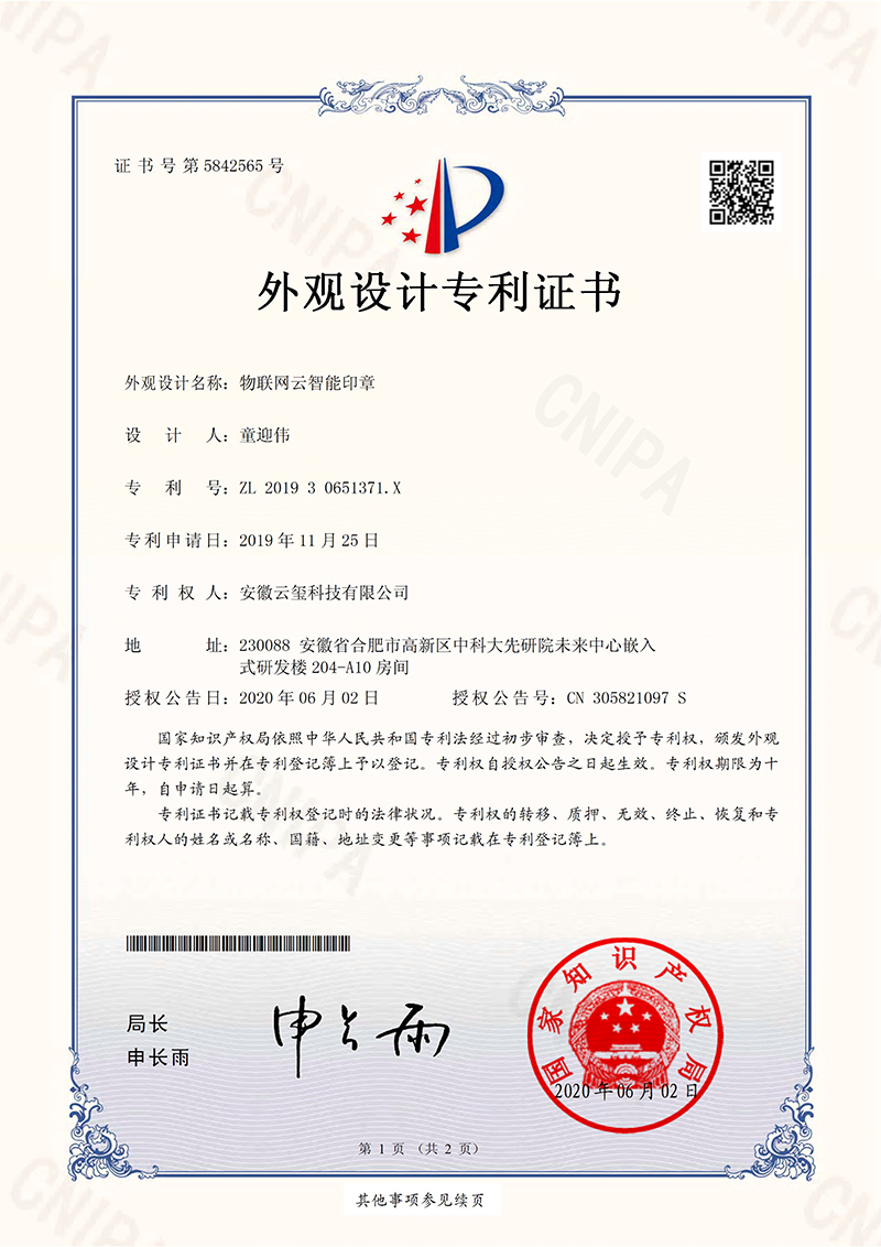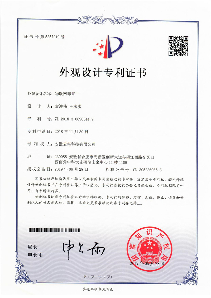 公司原創(chuàng)發(fā)明一體式智能印章技術,引領國內外新一代智能印簽創(chuàng)新變革。獲中日韓多項發(fā)明專利,徹底解決了實體印章和電子印簽管控的社會難題,獲國務院國資委全國央企熠星二等獎。公司聯(lián)合國家信息安全產品認證中心、公安部三所、信通院、中國印章協(xié)會等,主導起草了行業(yè)首個智能印章安全認證標準和智能印章產品標準,引領了智能印章行業(yè)發(fā)展。